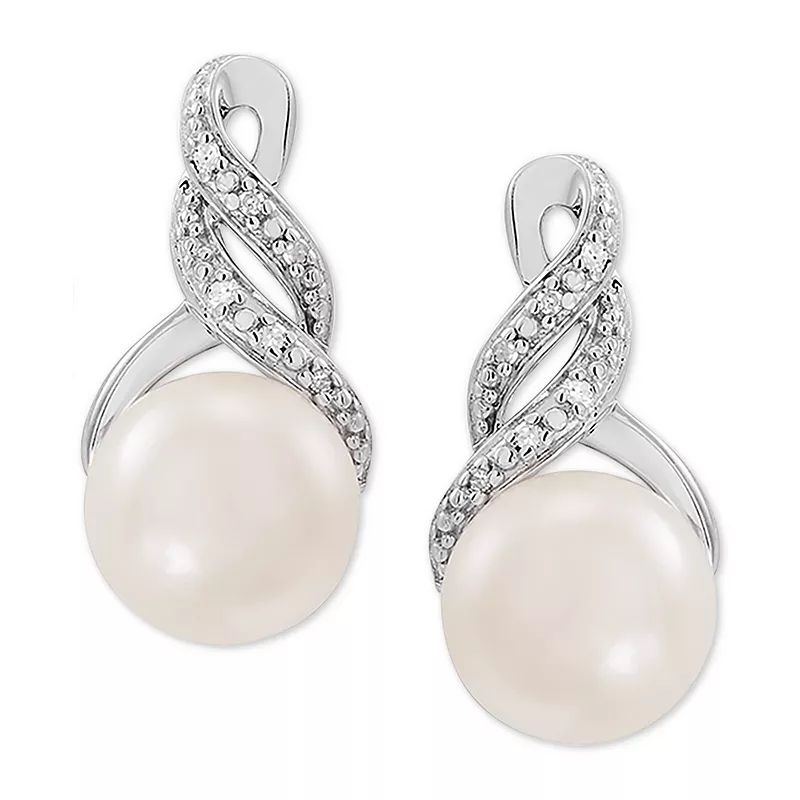 A diamond accented swirl adds a hint of glamour to this stunning cultured freshwater pearl (8 & 9mm) pendant necklace and matching stud earrings.