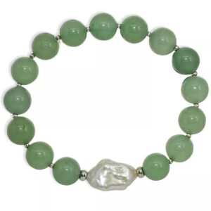 Genuine Stone Bead Biwa Pearl Stretch Bracelet